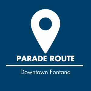 Start at Arrow Blvd and Sierra Ave (Check in and start at the Fontana Chamber of Commerce). The parade heads south on Sierra Ave making a turn East on Orange Way, North on Mango Ave, West back on Arrow Blvd, ending at Miller Park.